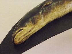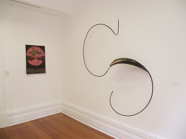 Carved and painted rimu and steel