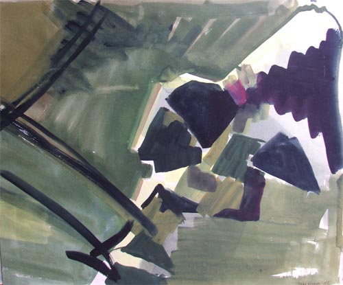 Jan Nigro Fault lines, Rotorua wash on paper, 380 x 445 mm, signed & dated 56.