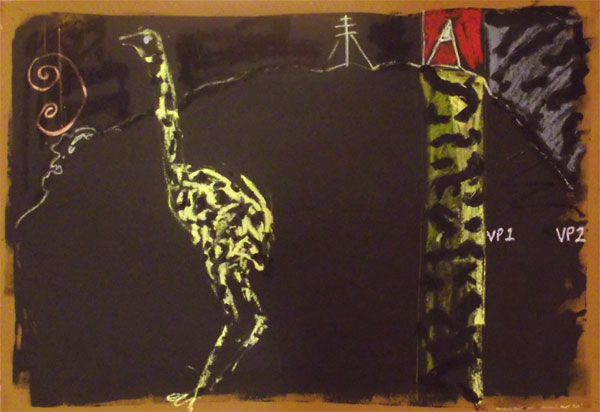 MOA - Lyall has had a long interest in adoption and adaptation. He himself is an expatriate. An Australian now living and working in New Zealand. He says, "here in the Southern Hemisphere we have great flightless birds: - Moas, Emus, Ostriches. Some extinct, others not. In the act of coming to NZ I came to a place where some birds walk and the only endemic land mammals fly. I came by jumbo! The lost Moa is a lost voice., that through our acceptance of loss we sometimes make the lost iconic. The Moa has become an icon, the extinct fauna as a valorised gap".