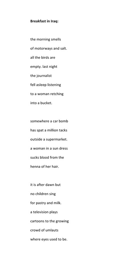 In the second place I chose a poem by Jack Spicer, ‘Before I go to bed’, that was appealing in its simplicity of voice and will resonate with anyone who has sat staring at certain computer screensavers for too long! I understand that Jack is studying writing and Spanish at Auckland University and I wish him all the best with both.