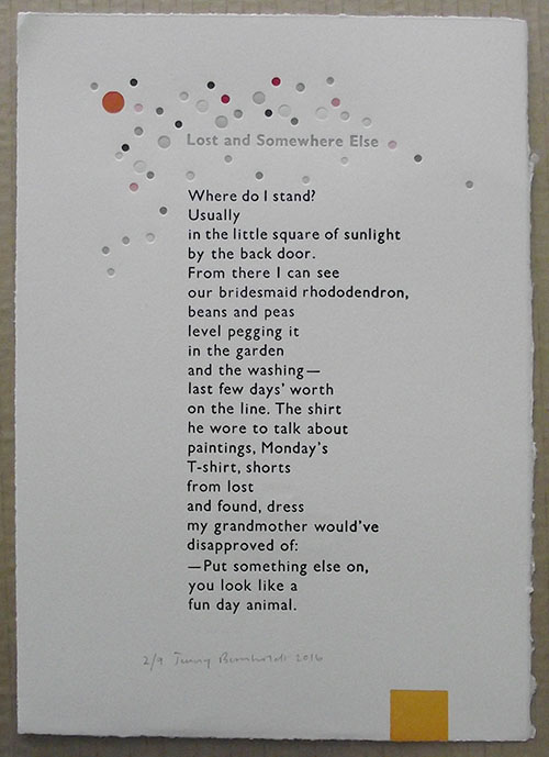For more information or to purchase a limited edition poetry broadsheet contact Jane Sanders.