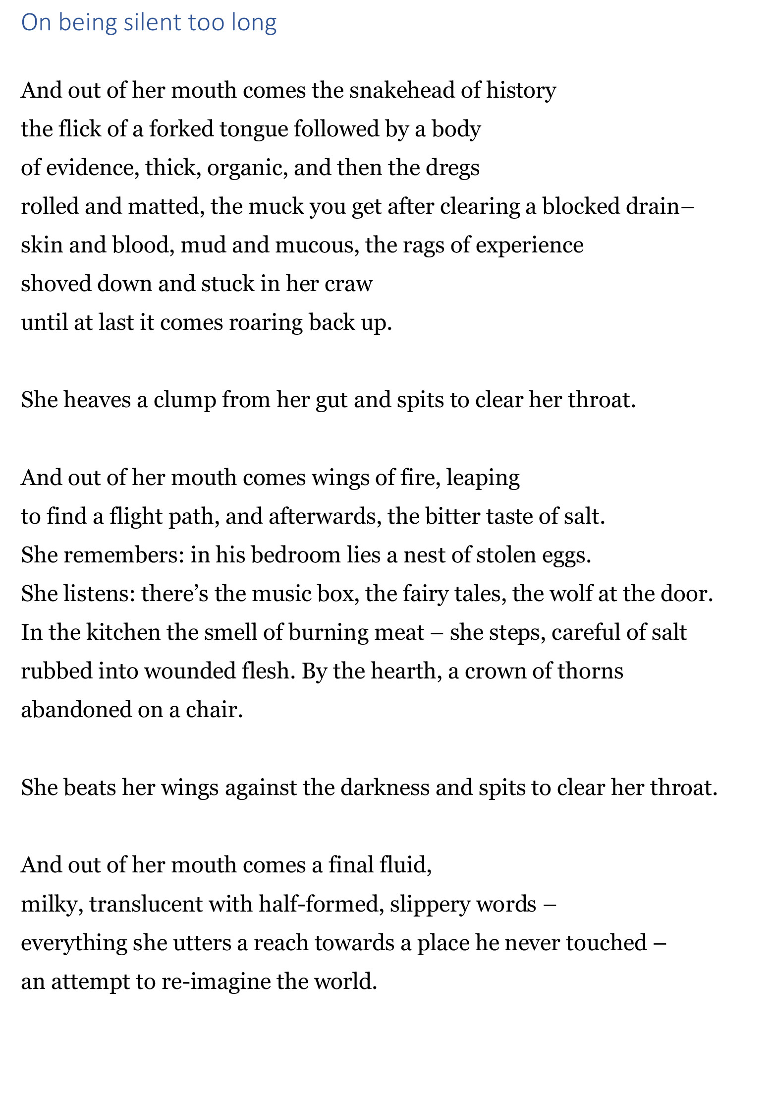 Runner-up: PATRICIA HANIFIN On being silent too long