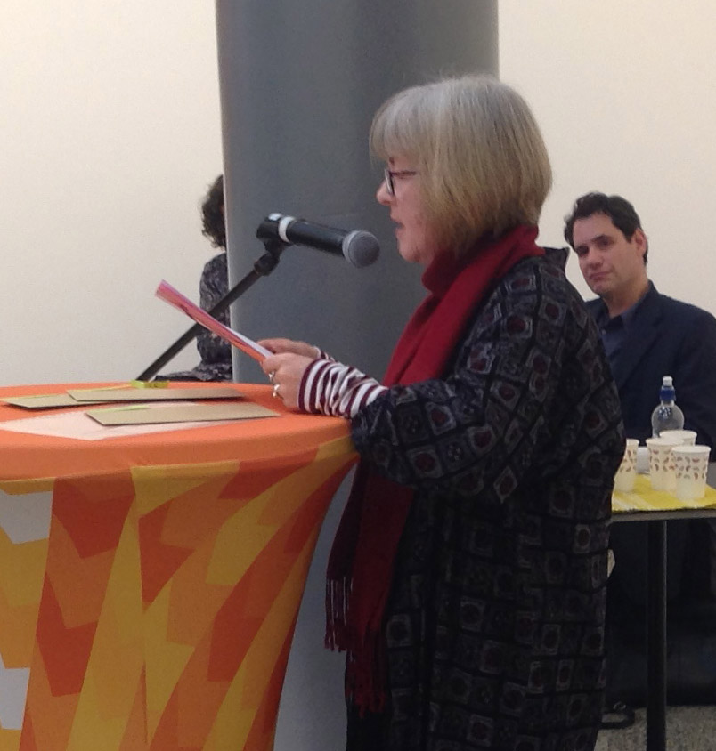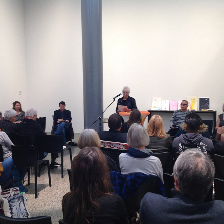 Poet Michael Giacon brought a lightness to his role as MC and at the end of the readings invited this year’s judge to announce the winners. Elizabeth Morton, herself a past winner, provided an overview of her reading of the entries and described how she, “… was gobsmacked by the attention and craft of the sixty poems in the menagerie.”. She then invited the commended and highly commended poets to the front to be acknowledged, before announcing and asking Patricia Hanifin, the runner up, to read her poem On being silent too long. Then Morton described the winning poem by Gillian Roach A boy says he has no say as “…a delicate poem, with an enviable lightness of touch” noting “Each time I read it I felt closer to its truth.”